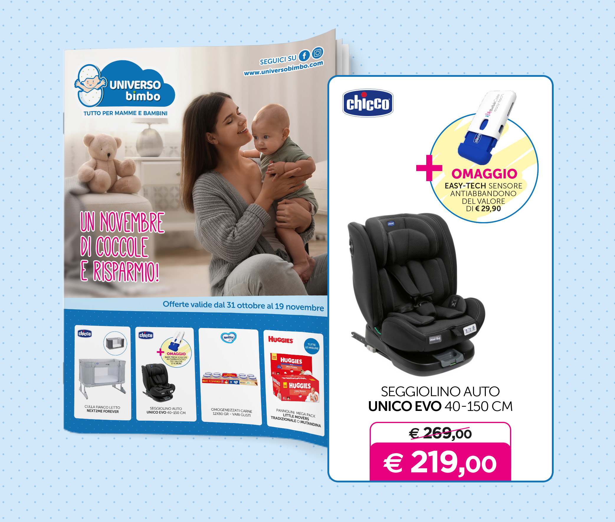 CHICCO – Seggiolino Auto Unico Evo I-Size€269,00€219,00 Questo prodotto ha più varianti. Le opzioni possono essere scelte nella pagina del prodotto