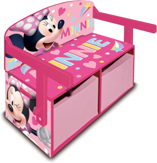 Si trasforma facilmente da panchina a scrivania, offrendo anche spazio per riporre giochi e accessori. Struttura in legno, dotato di 2 ceste inferiori. Dimensioni: 60 x 34 x 56 cm.