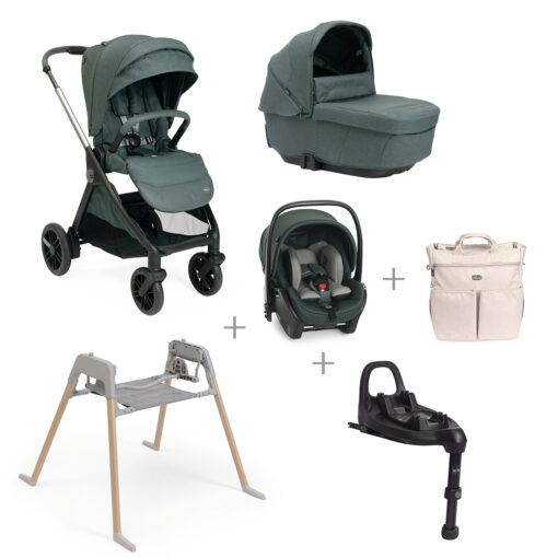 CHICCO – Trio Bellagio Fir Tree Con Seggiolino Auto First Recline + Base Auto + Borsa + Stand Lullaglide