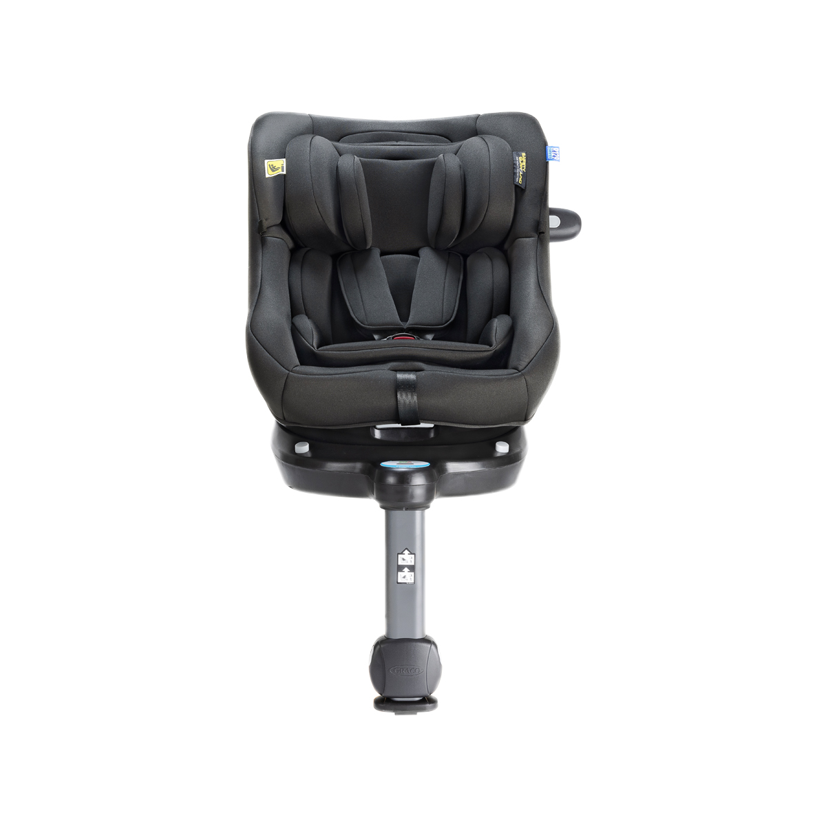 - Installazione esclusivamente tramite gli agganci isofix integrati nella base e il piede di supporto. Utilizzabile in senso contrario di marcia per tutta la durata di utilizzo, mentre in senso di marcia a partire dai 76 cm di altezza e 15 mesi compiuti del bambino. Indicatori semaforici di corretta installazione dei ganci Isofix e del piede di supporto.