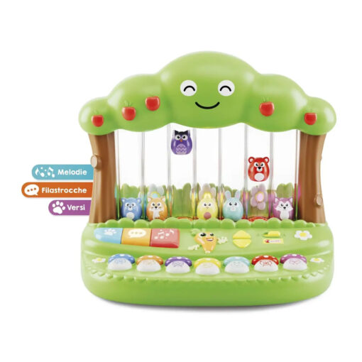 Gioco elettronico educativo con suoni, versi e filastrocche. 7 animaletti salterini che si muovono al ritmo della musica. Luci LED multicolore per stimolare la vista e l’interazione, sviluppa manualità fine, attenzione e coordinazione.