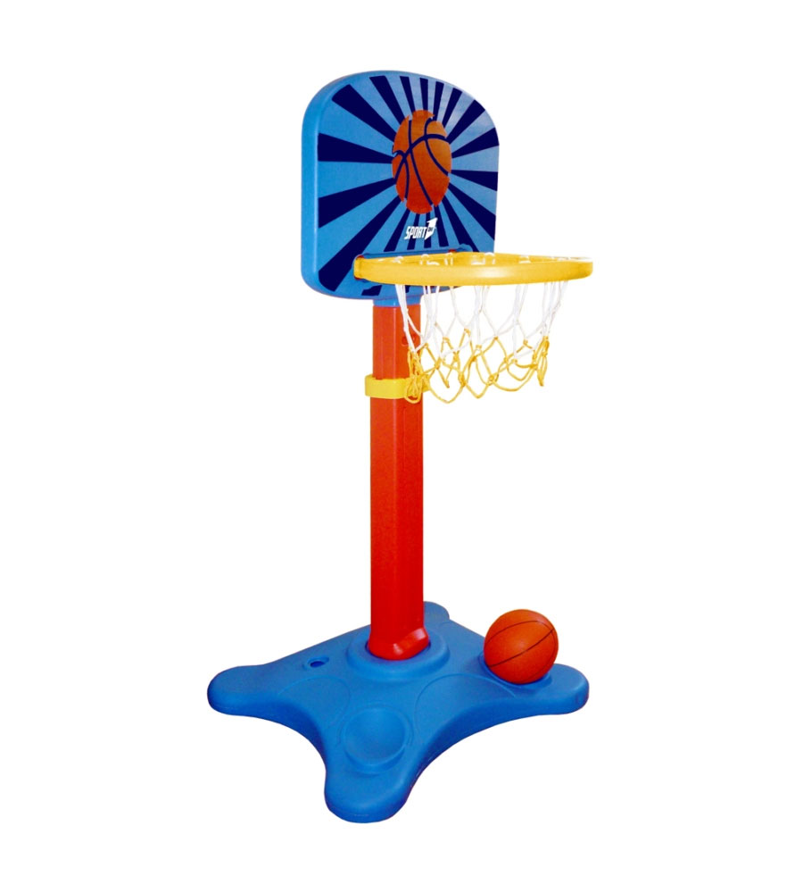 Piantana da basket Rookie regolabile in altezza. Realizzata in plastica con base zavorrabile con 20 kg di sabbia. Nella confezione sono incluse una palla e una pompa. Dispone di altezza anello di 890/1290 mm, un tabellone di 375×520 mm e una palla con diametro 150 mm.