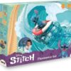 Nella confezione sono inclusi: 1 auto di Stitch con personaggio (batterie incluse), 184 pz (per creare 4,40 metri di pista). Funziona con 3 batterie 1,5 V-LR03 incluse.