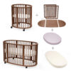 Il pack è composto da: Culla Mini Sleepi + Kit Estensione + Materasso Mini & Sleepi + Lenzuolo Mini e Sleepi.